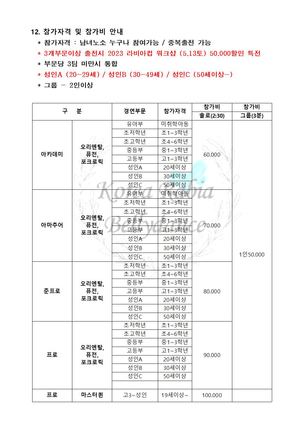 2023 제17회 코리아라비아컵 요강 작성자rabiakim|작성시간23.02.28|조회수320 목록 댓글 0 글자크기 작게가 글자크기 크게가 구글접수창솔로 https://forms.gle/NnoP7Gt4RMgWooYN8 단체https://forms.gle/wBs3jKTEH1poLdLV6 다음검색 현재 게시글 추가 기능 열기 북마크 공유하기 신고 센터로 신고 댓글 댓글 0 댓글쓰기 답글쓰기 댓글 리스트