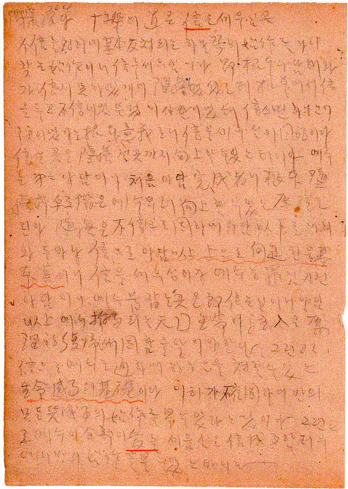 그런고로 信으로 예수를 通하여 하나님을 対할 수 있는 生命成事의 基礎이다. 이 터가 確固하여만의 모든 뜻 成事의 始作를 볼 수 있다는 겄이다. 그런고로 예수이 全部이 愛를 세움심은 信 成事한 터 우에서만의 始作을 볼 수 있는 바이다.