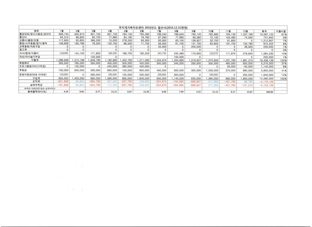 통해 년간 기부금액과 활동실적을 3월 31일까지 공개한다.)에 의거 아래과 같이 '2016년 결산서'를 공고합니다.
