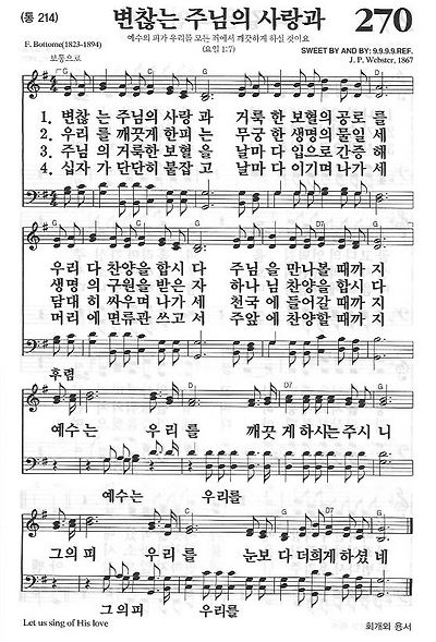 [스크랩] 새찬송가 270 장 - 변찮는 주님의 사랑과 [찬양*악보] 작성자Holy Gentleman|작성시간10.08.20|조회수1,454 목록 댓글 0 글자크기 작게가 글자크기 크게가 다음검색 스크랩 원문 : 춘천 대우인력 김진규 현재 게시글 추가 기능 열기 북마크 공유하기 신고 센터로 신고 댓글 댓글 0 댓글쓰기 답글쓰기 댓글 리스트