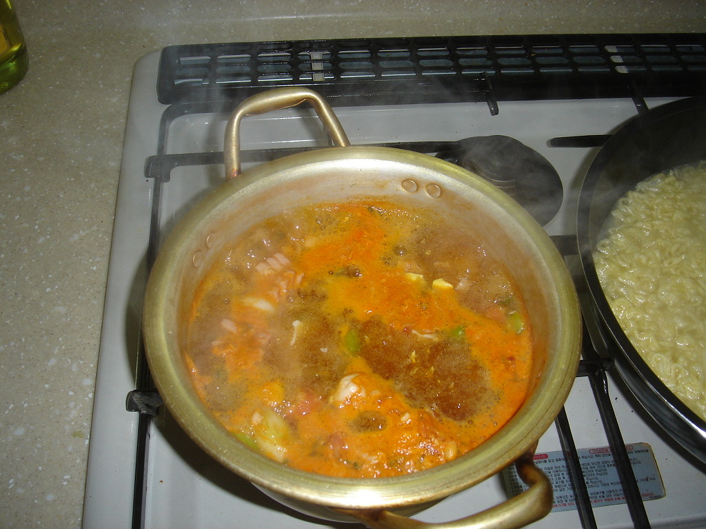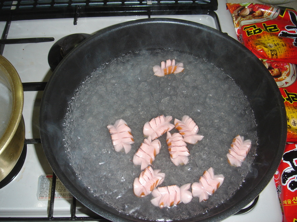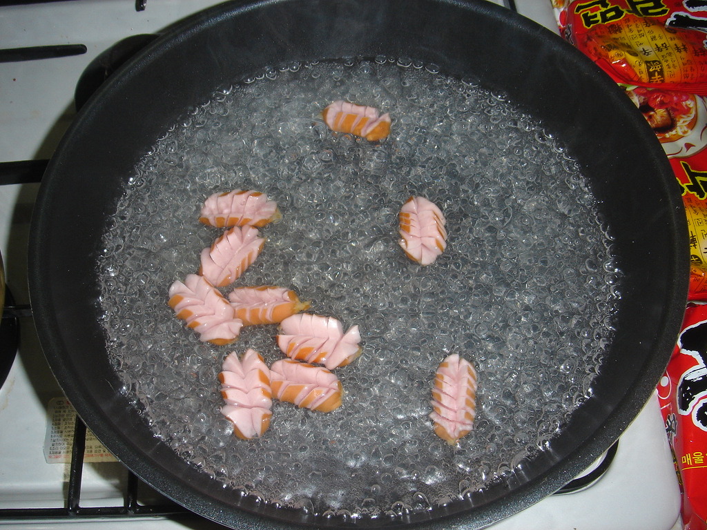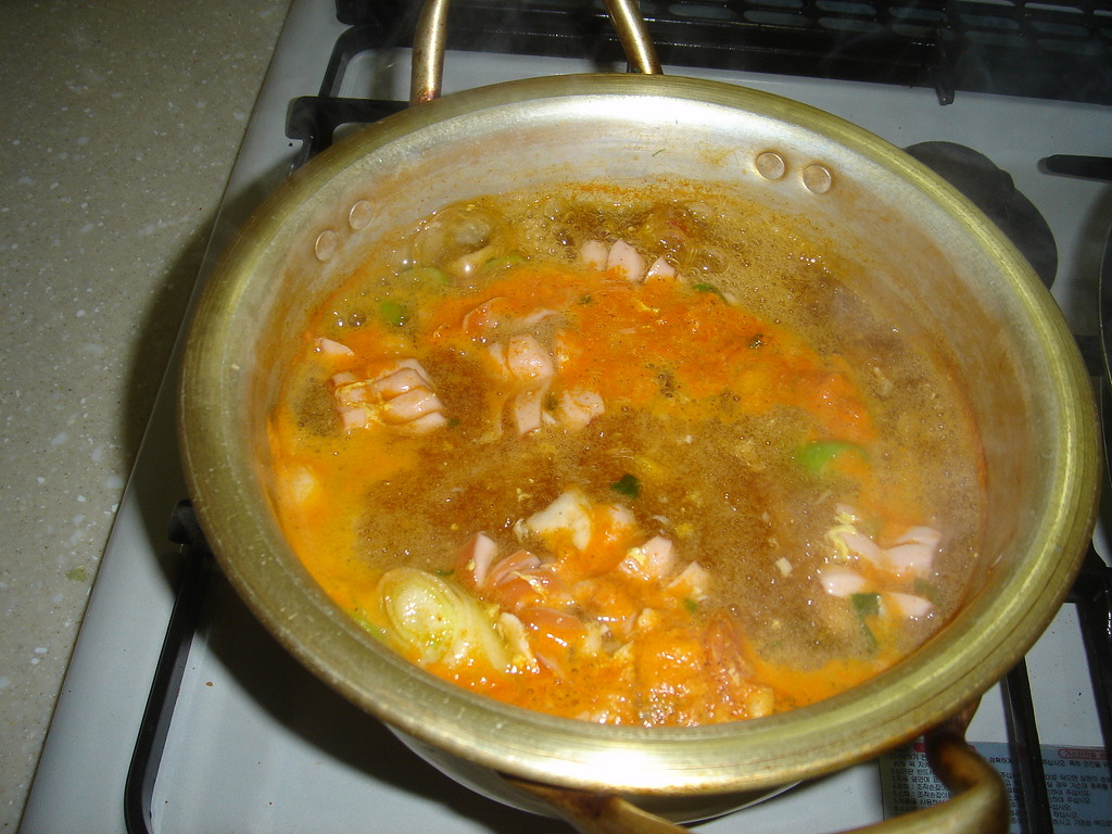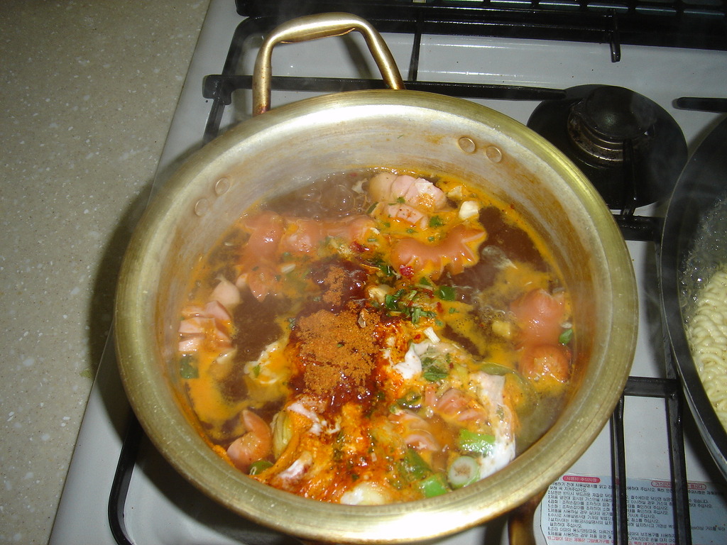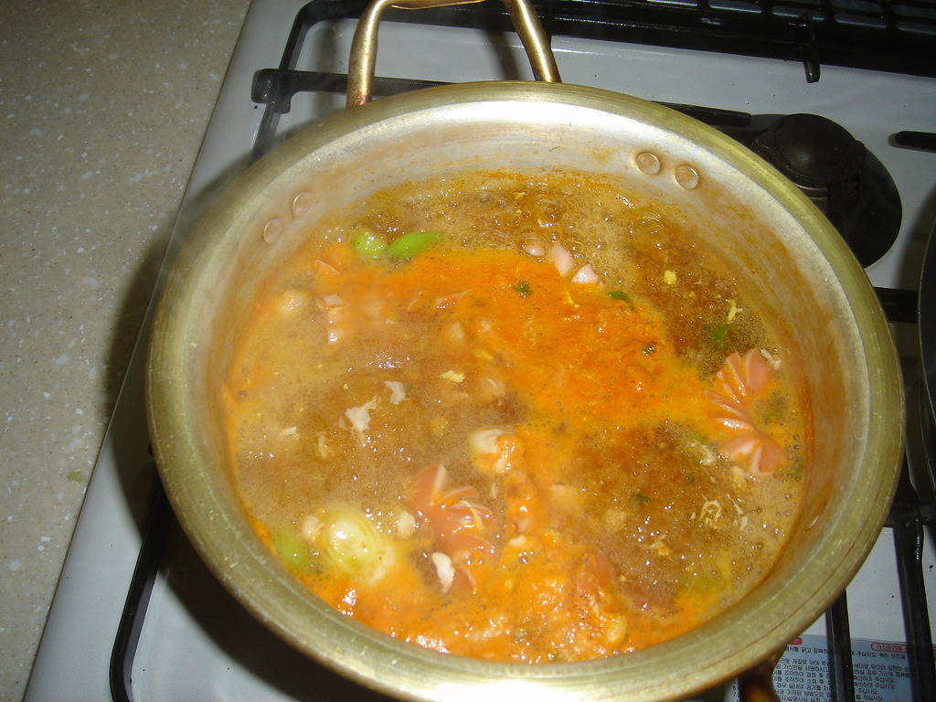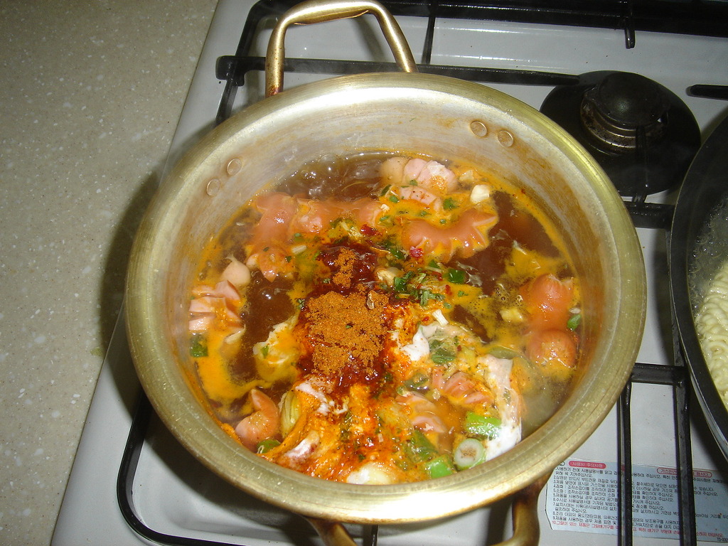 국물재료는: 소세지,계란,파,라면 건더기 스프,스프,신라면