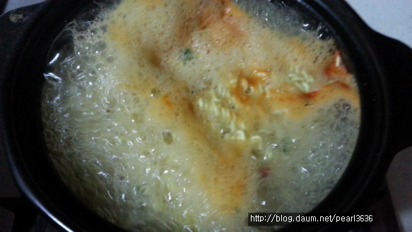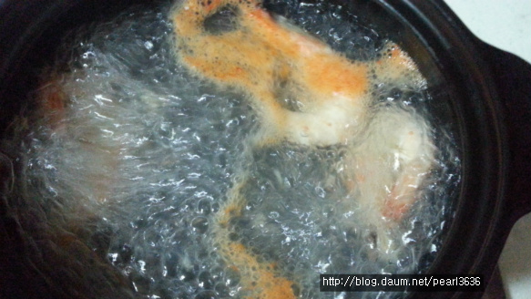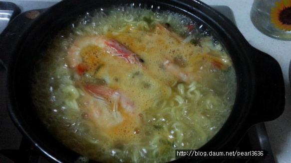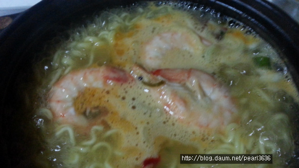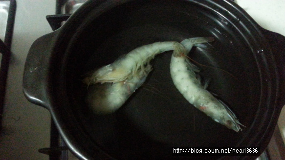 새우가 좀 짜서 국물을 더 첨가해서 끓이는 것이 좋네요.