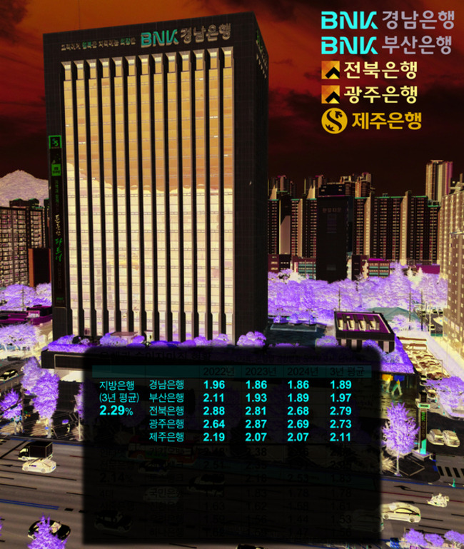 그동안 지방은행은 상대적으로 이자이익 의존도가 높고, 양호한 수익을 유지해 순이자마진(NIM)이 다른 은행권보다 높았다. 순이자마진은 이자수익자산 운용수익과 이자비용부채 조달비용의 차이를 이자수익자산으로 나누어 산출한다.