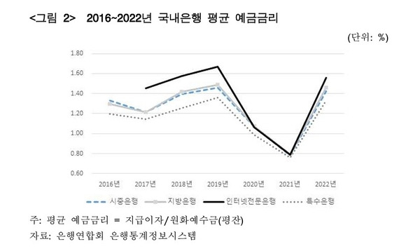 2022년 기준 인터넷전문은행 예금금리는 지방은행을 앞질렀다. /한국금융연구원
