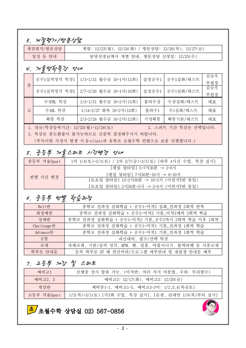 [공지][2024 중고등부 겨울방학 일정 종합안내] 작성자Mastyner|작성시간24.12.18|조회수626 목록 댓글 0 글자크기 작게가 글자크기 크게가 [2024 중고등부 겨울방학 일정 종합안내] 다음검색 현재 게시글 추가 기능 열기 북마크 공유하기 신고 센터로 신고 댓글 댓글 0 댓글쓰기 답글쓰기 댓글 리스트