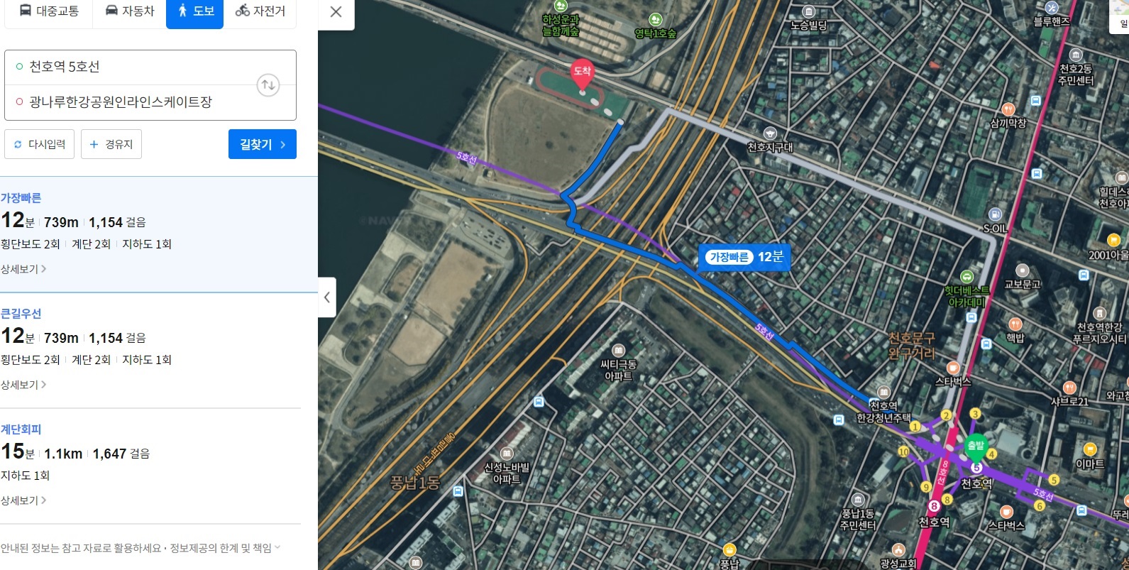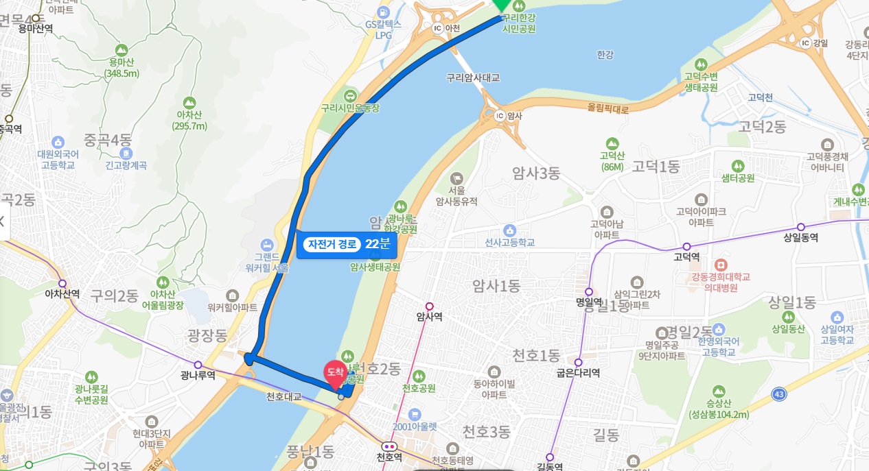 광나루 한강공원 인라인스케이트장 가는 길, 천호역에서 도보로 가는 방법