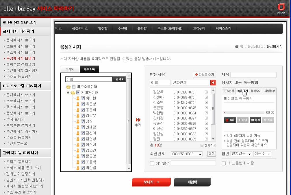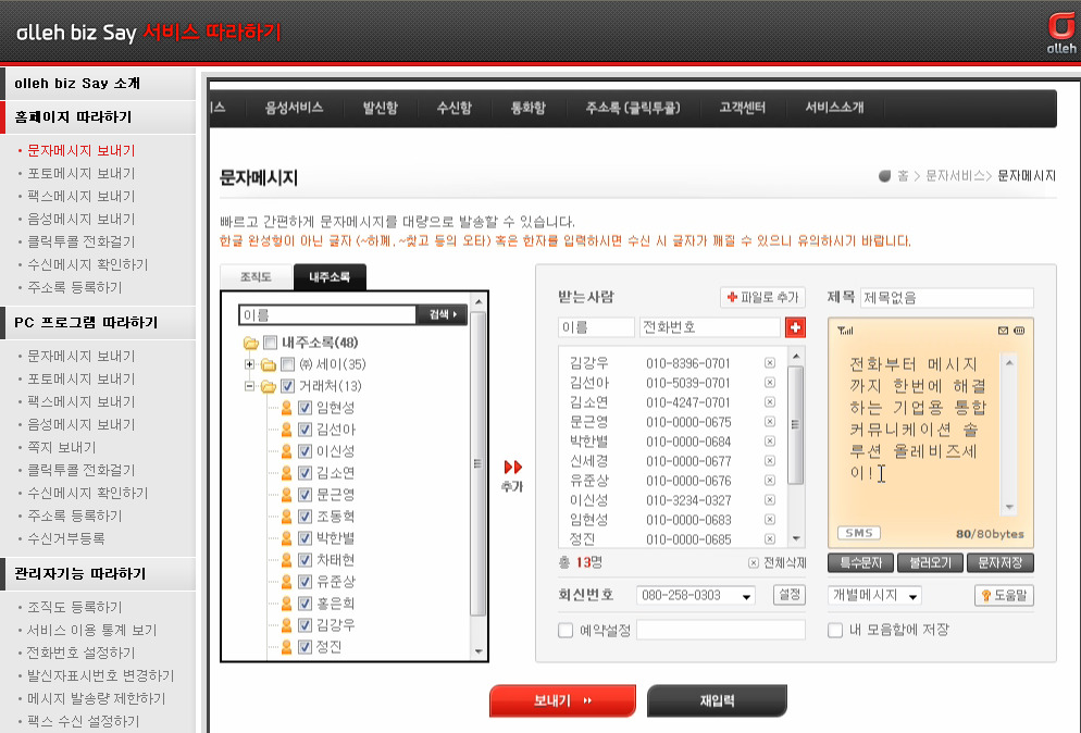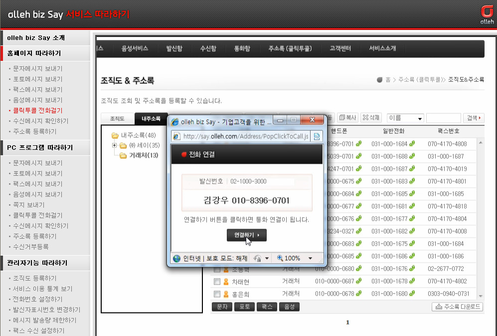 - 홈페이지에서 사용하기(문자/포토/팩스/음성/클릭투콜/주소록
