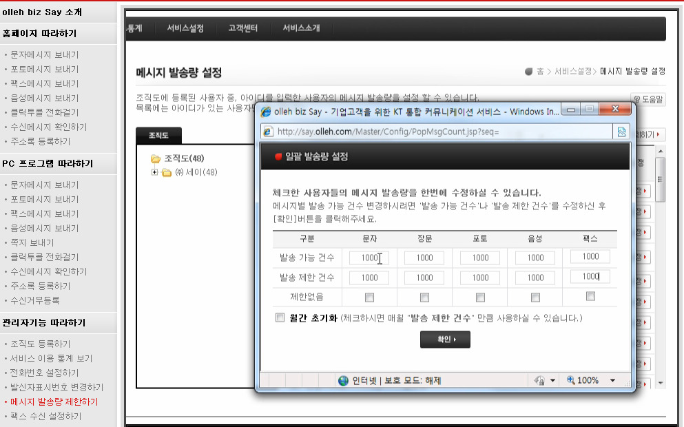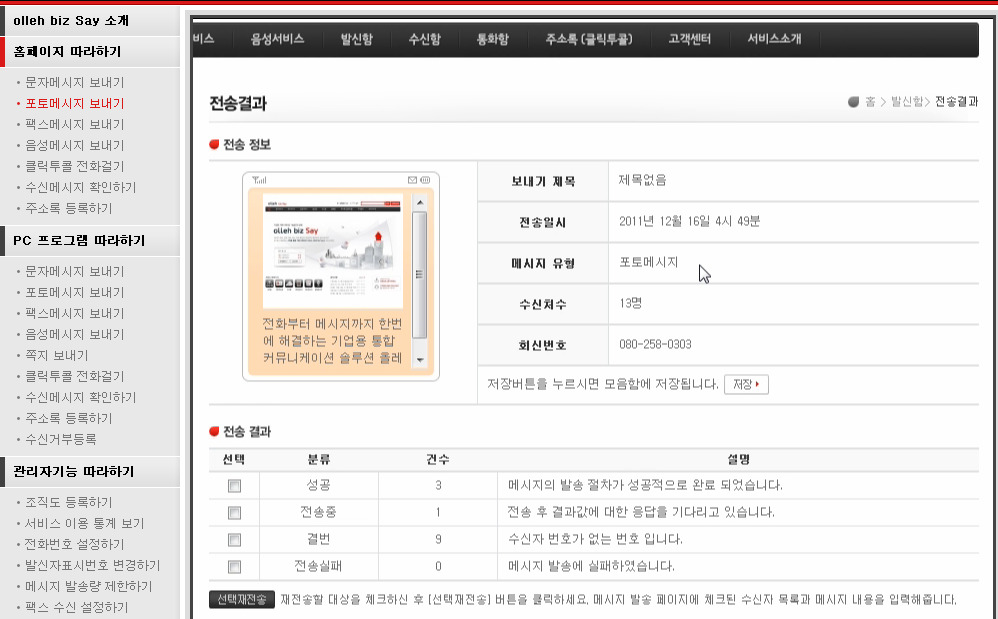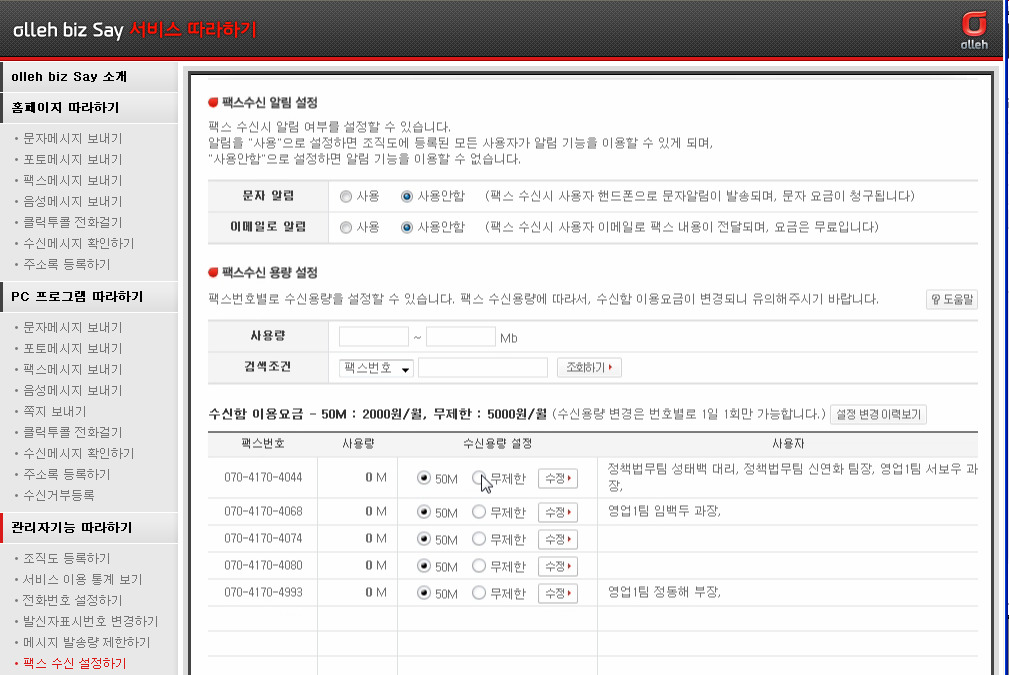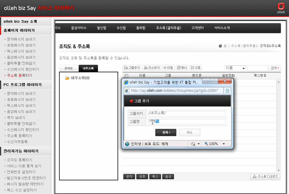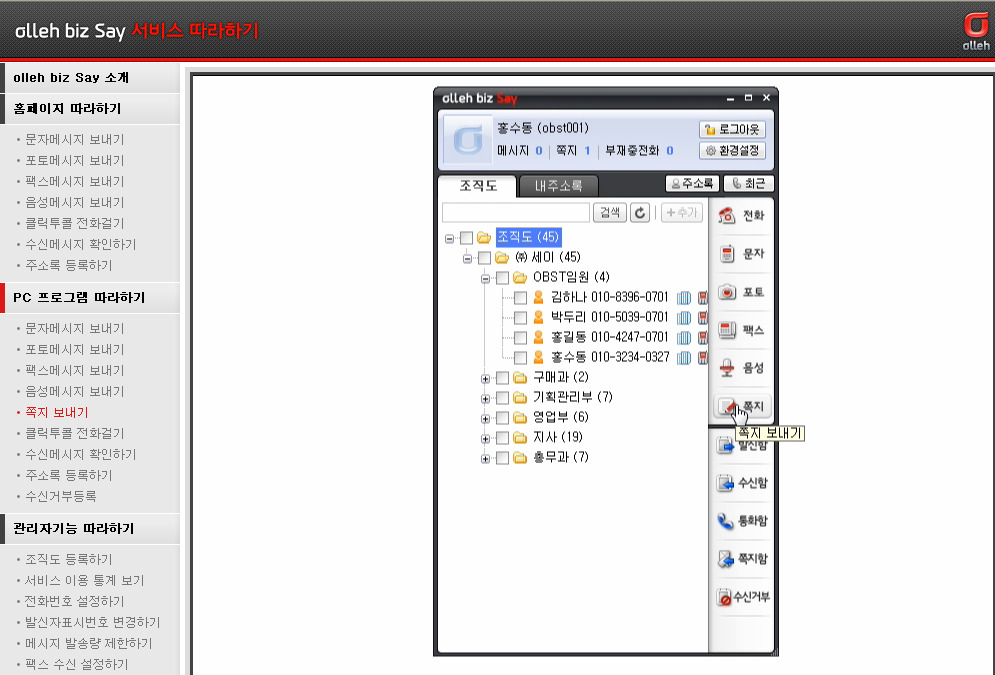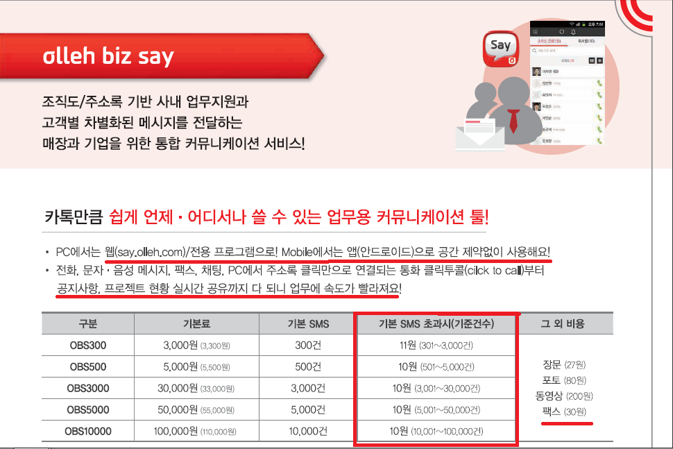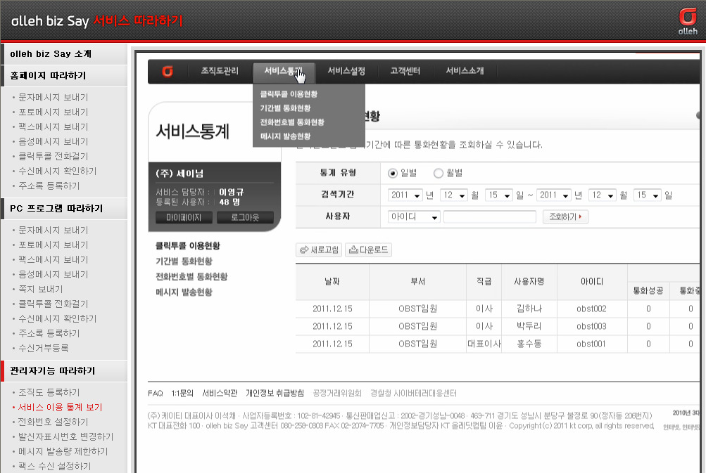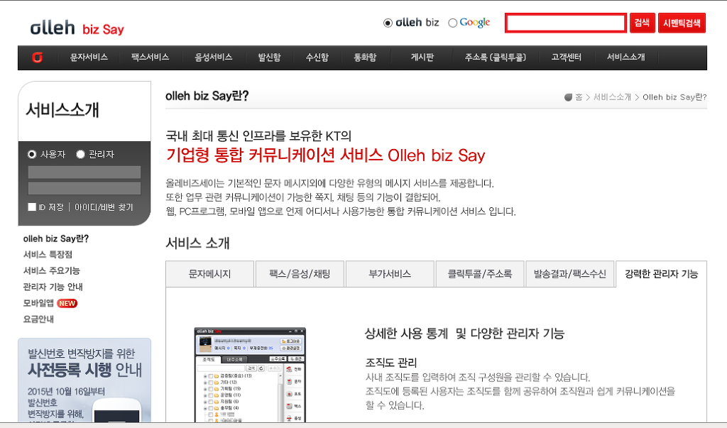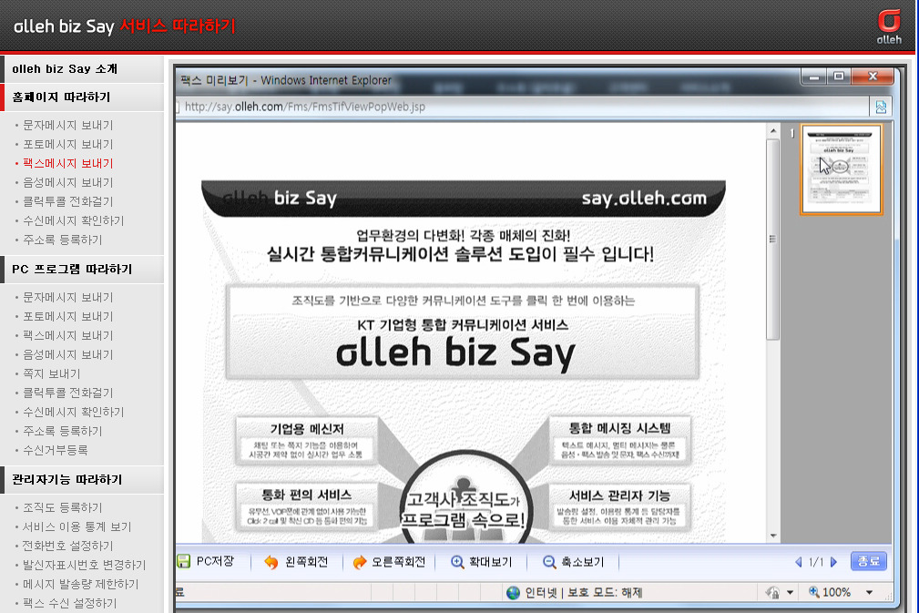 olleh biz 세이는 웹사이트 및 전용 프로그램을 제공하여