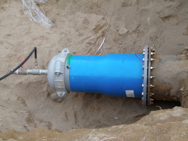 단관 소켓프랜지연결 후 수압 (버팀목 설치) 유리섬유관
