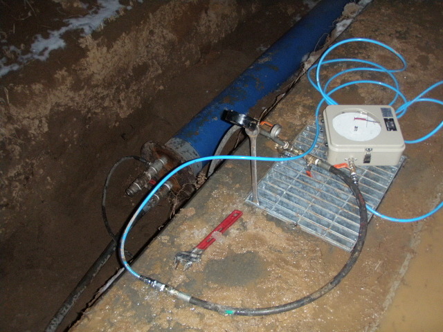 제수변을 닫고 통수압력에 1.5배를 가하여 압력을 체크한다. (통수시에는 정확한 압력을 체크하기 어려움)