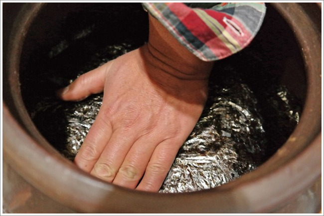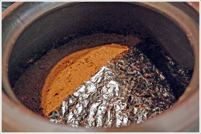 깔끄미를 이용하여 하나도 남김없이 싹싹 긁어서 항아리에 담습니다.