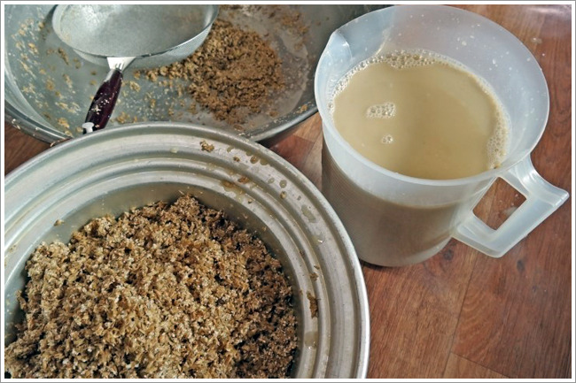 엿기름 1.6kg을 미지근한 물 6리터에 30~40분간 담그는데