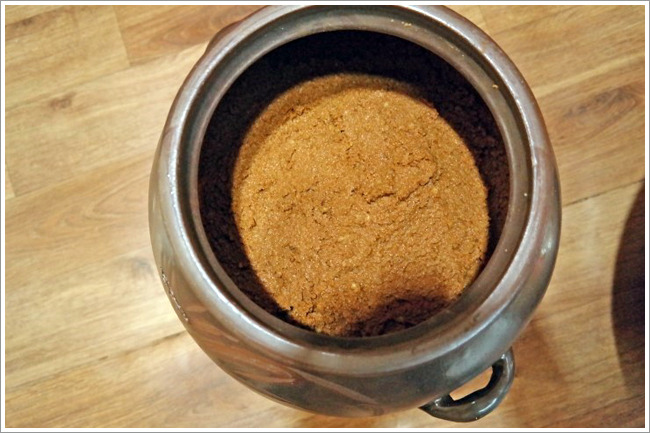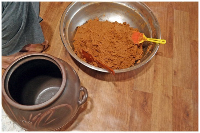 잘 버무려진 강원도보리막장을 항아리에 잘 넣고 마무리합니다.