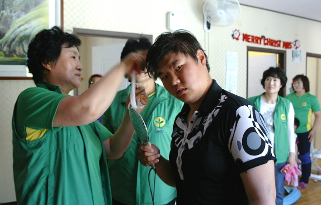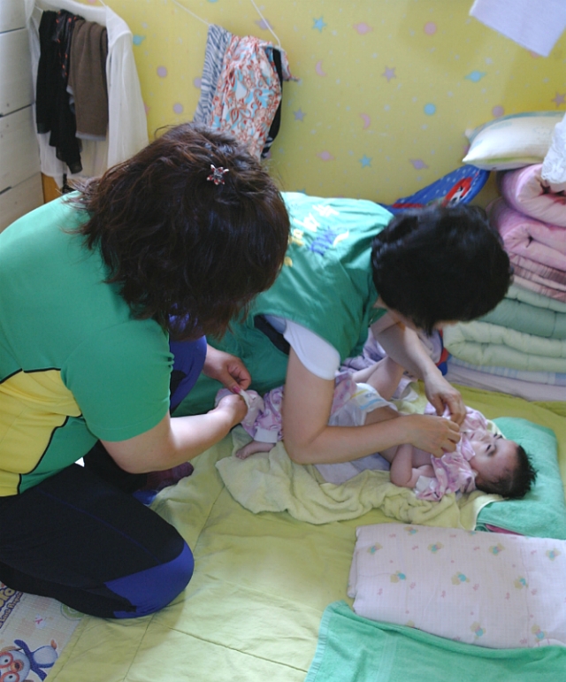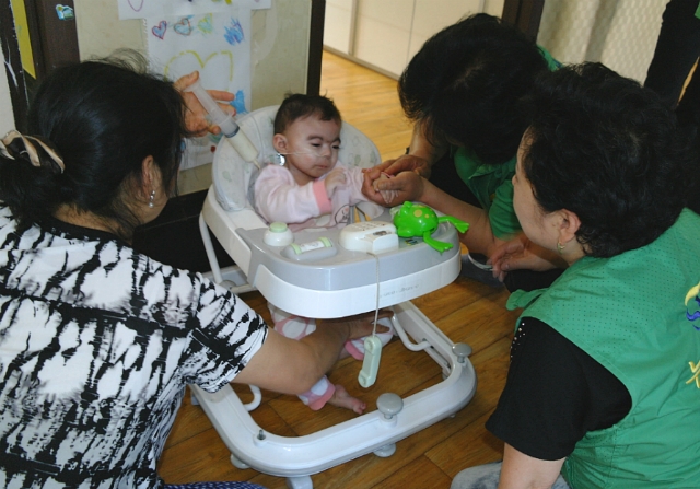 봉사원들은 시설에 거주하는 대상자들을 대할 때의 주의사항을 듣고 시설의 안내를 받았다. 이어 시설 내 도움의 손길이 필요한 부분을 신속하게 파악하고 청소와 세탁, 목욕시키기, 이불시침, 등, 조별로 분담하여 구석구석 털어내고 닦아주며 말끔히 정리를 해주었다. 대상자들 중에 쌍둥이 3세 여아 둘이 봉사원들의 인기를 독차지 했다. 목욕을 시키고 나서 새 옷을 갈아 입혀 주었더니 방긋 웃는 입가에 진한 눈썹이 그린 것처럼 예쁘다며 웃음꽃이 피어났다. 귀염둥이들에게 음식을 먹일 때는 씹는 기능이 부족하여 코에 달린 튜브를 통해 미음을 먹이는 모습을 보고 봉사원들이 안타까운 마음으로 서글퍼했다.