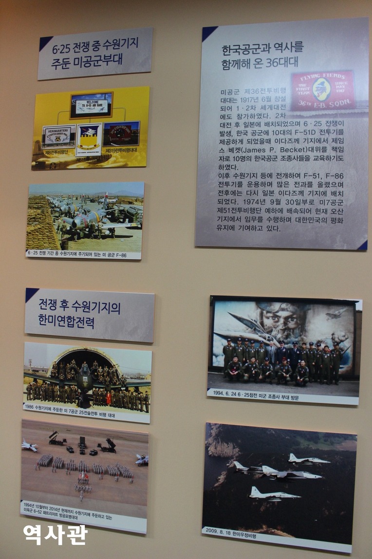 무장 전시관 바로 옆에 있는 역사관은 10전비의 역사를 알 수 있는 곳입니다. 원래 공군 제 10전비는 비행단이 아니라 ‘전대’이었는데 전쟁에서 큰 성과를 이루자 ‘비행단’으로 승격이 되었습니다. 최초 강릉기지에서 창설되었으나, 다양한 이유로 1952년에 수원으로 이전하였습니다.