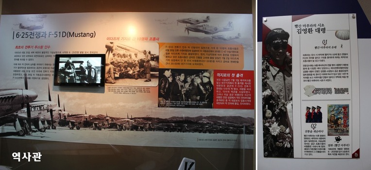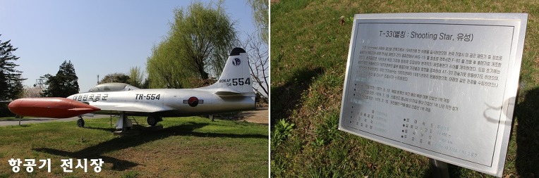 항공기 전시장에는 실제로 전쟁에 사용된 항공기가 전시되어 있었습니다. 특히 1996년 5월 23일 북한군 이철수 대위가 타고 귀순한 MIG-19, 한국 공군에서 운용했던 F-4E와 6.25 전쟁 시 미공군 제트기 중 최초로 투입된 T-33도 볼 수 있었습니다.