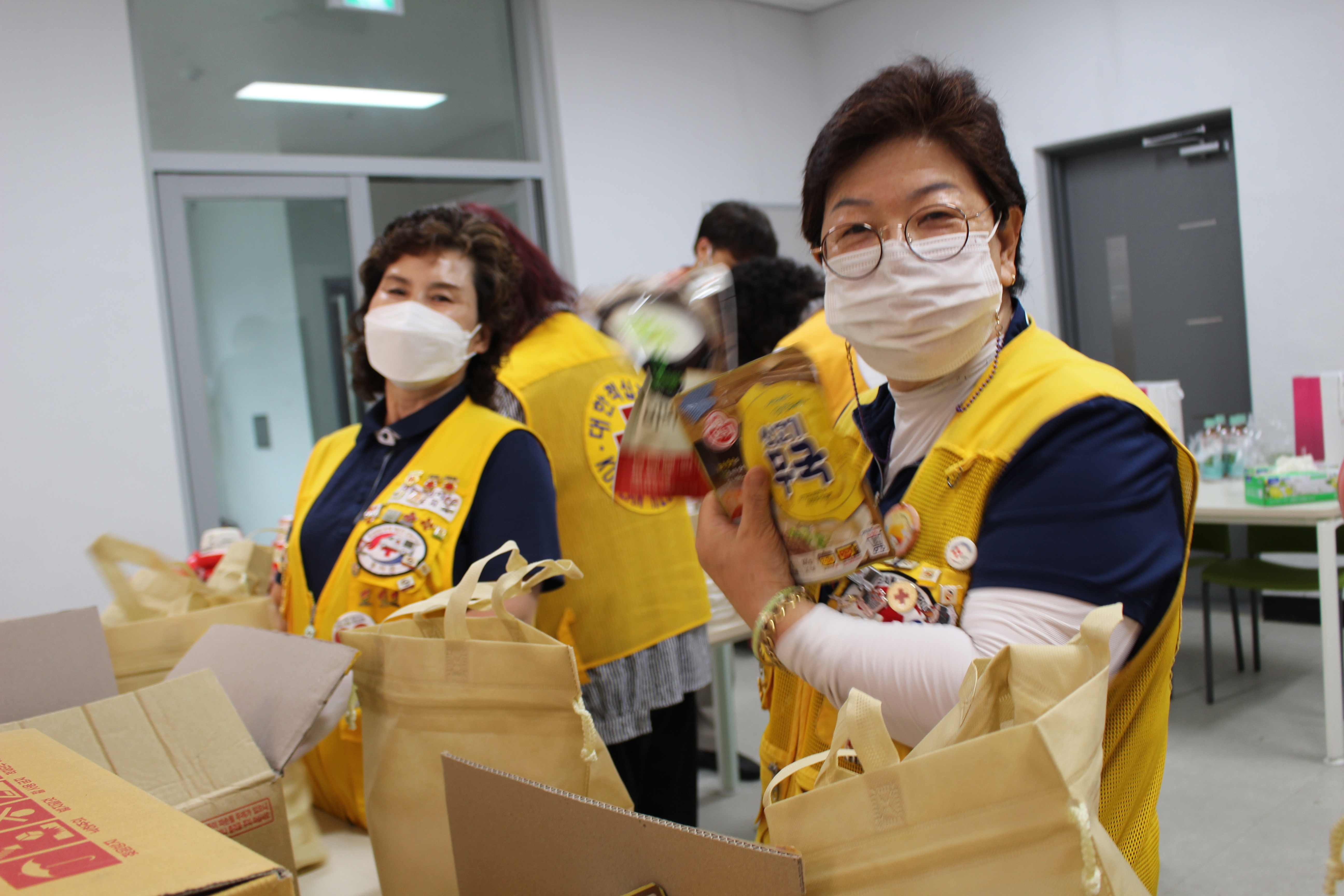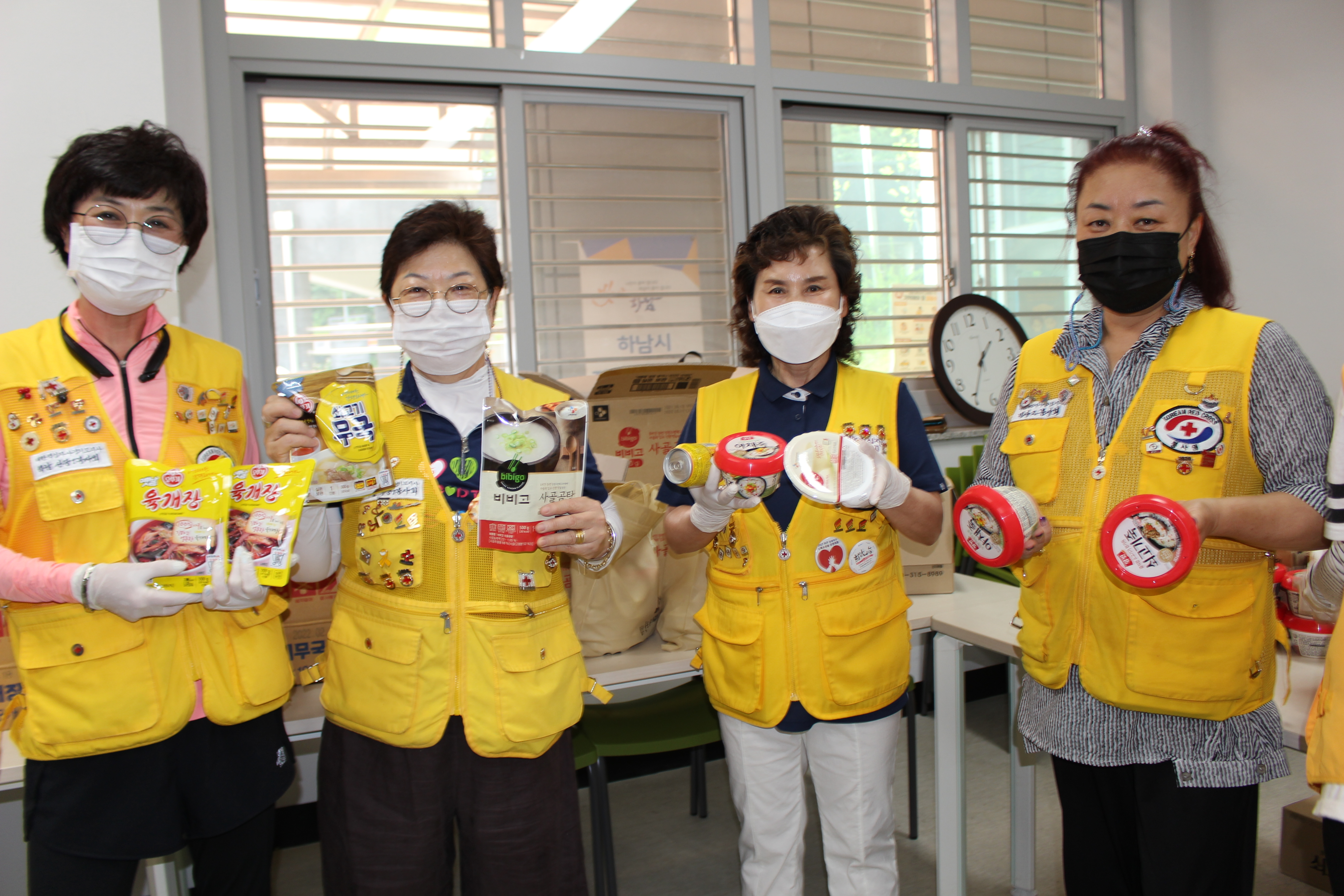 하남지구협의회(회장 안동분) 김봉순 총무부장 박온숙 부회장 강금덕 서기 홍경희 감사 천현 봉사회 강남순 회장 신장 2봉 사회 박춘옥 회장은 하남시 자원봉사센터 조리실에 모여 사랑의 식료품 키트 꾸러미 제작했다.