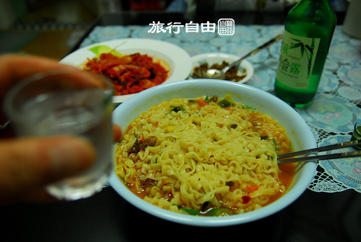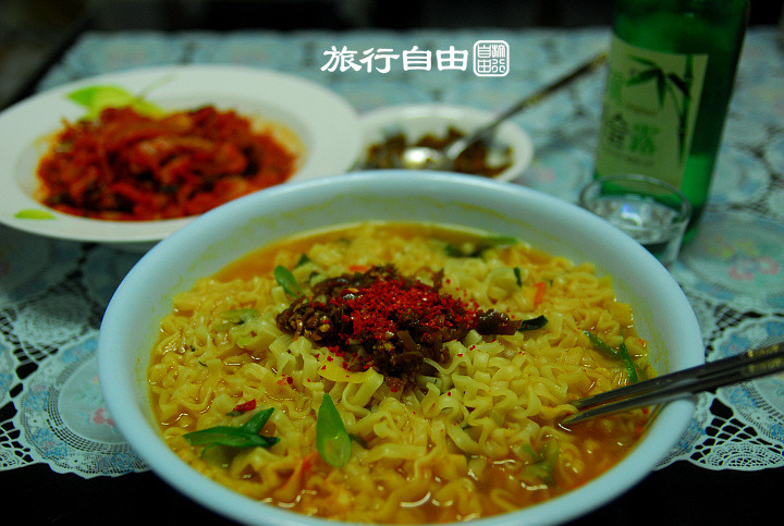 칼국수, 정확히 칼국수 라면, 그리고 김치 볶음, 삭힌고추, 그리고..그거 ㅋㅋㅋ;;