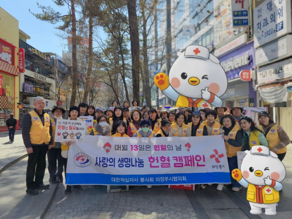 대한적십자사 봉사회 의정부시협의회(회장 양점숙) 소속 단위봉사회 봉사원 46명은 2026년 3월 13일(금) 오후 1시, 의정부 행복로에 위치한 헌혈의집 5층 쉼나눔터에 모여 올해 첫 합동 헌혈 동참 캠페인을 진행하였다.