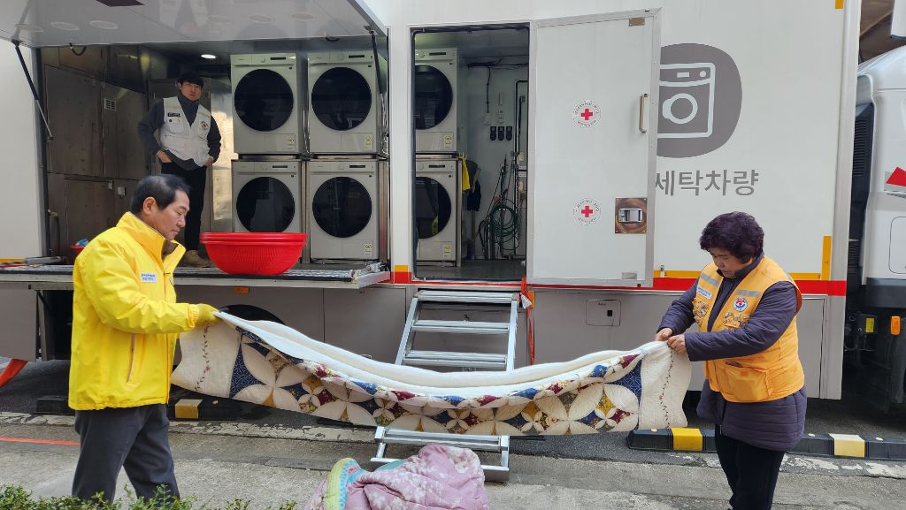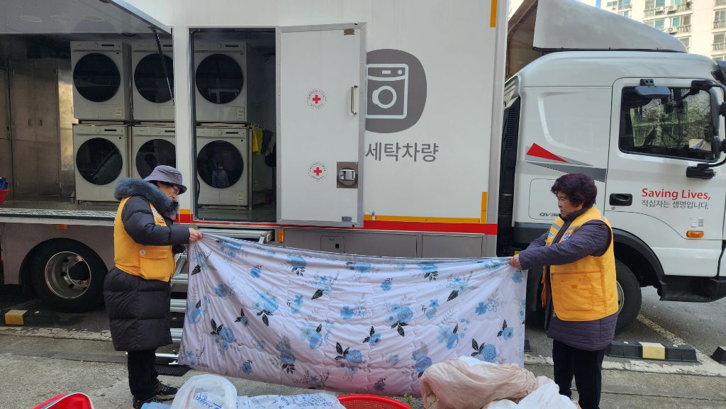 이번 세탁봉사는 거동이 불편한 홀몸 어르신들이 사용하시는 이불을 세탁해 드리기 위해 대한적십자사 경기도지사에서 지원한 이동세탁차량이다.