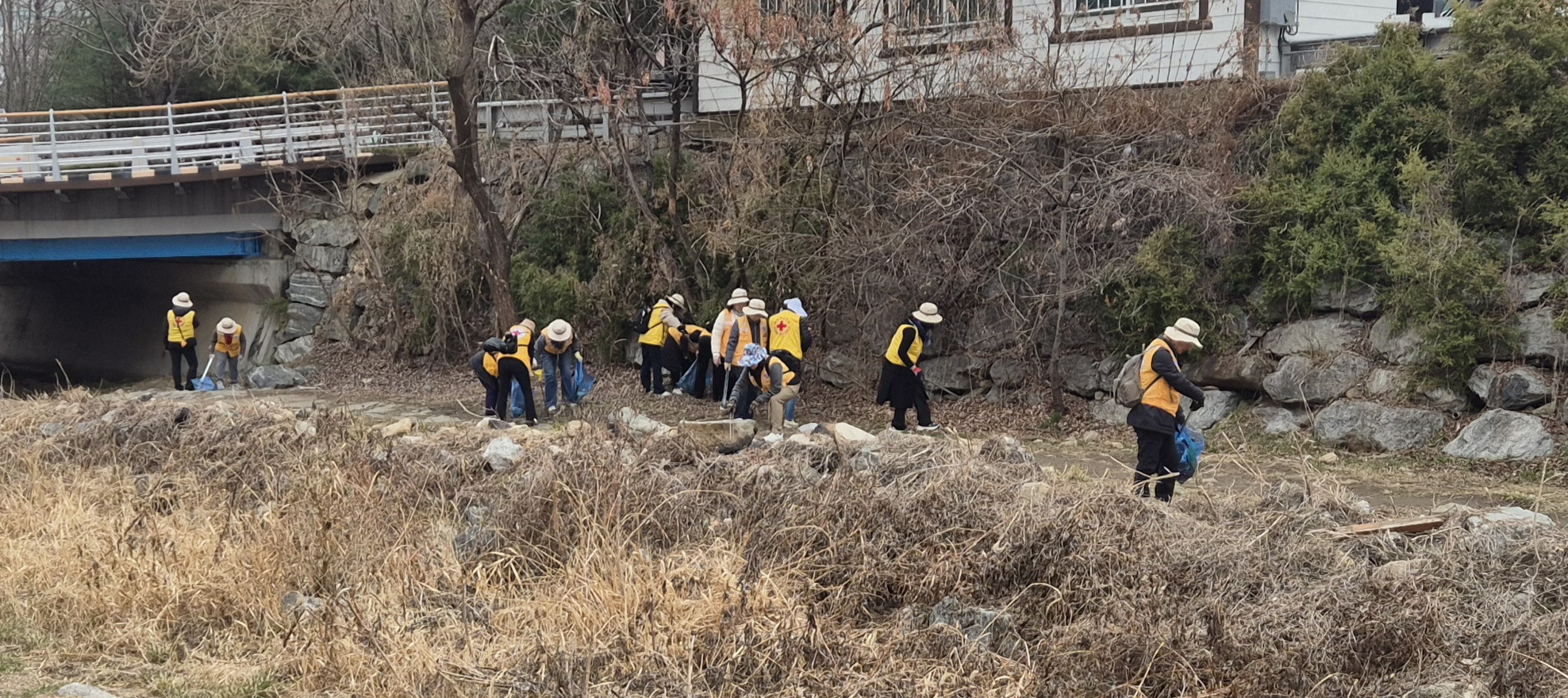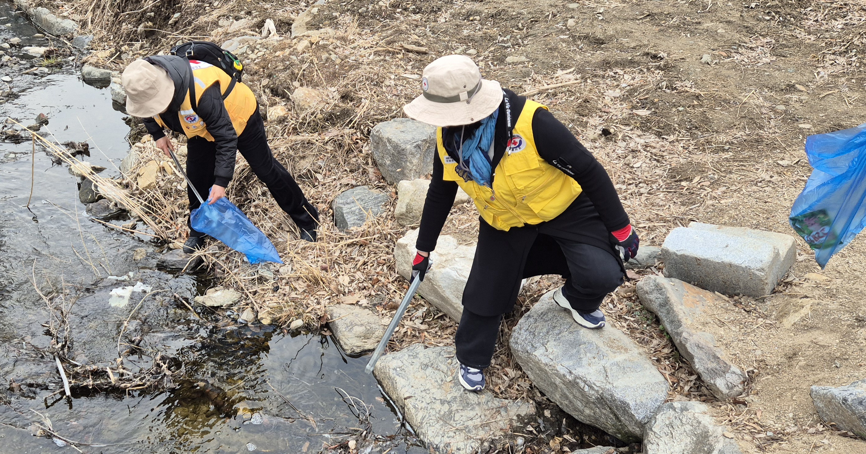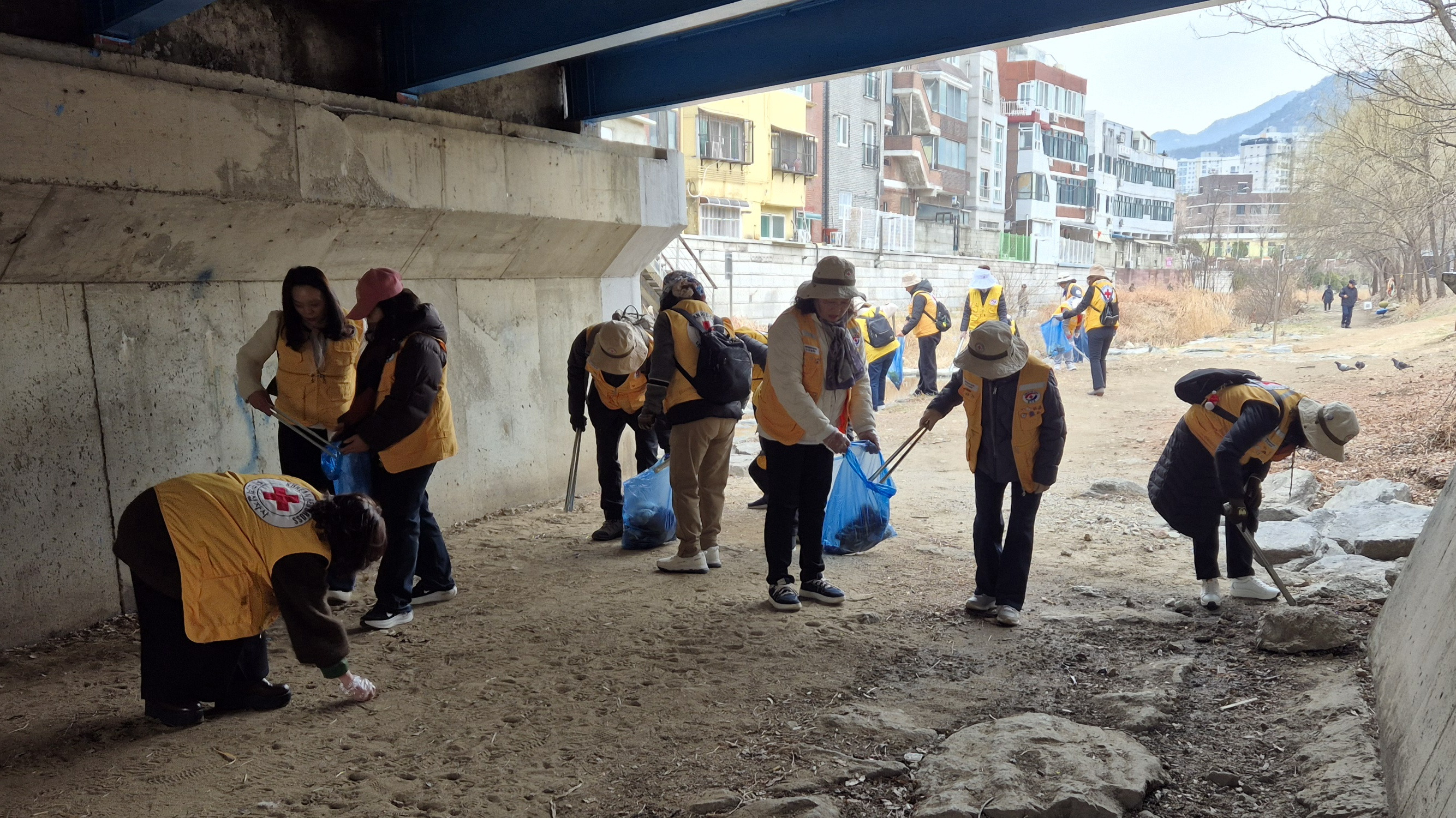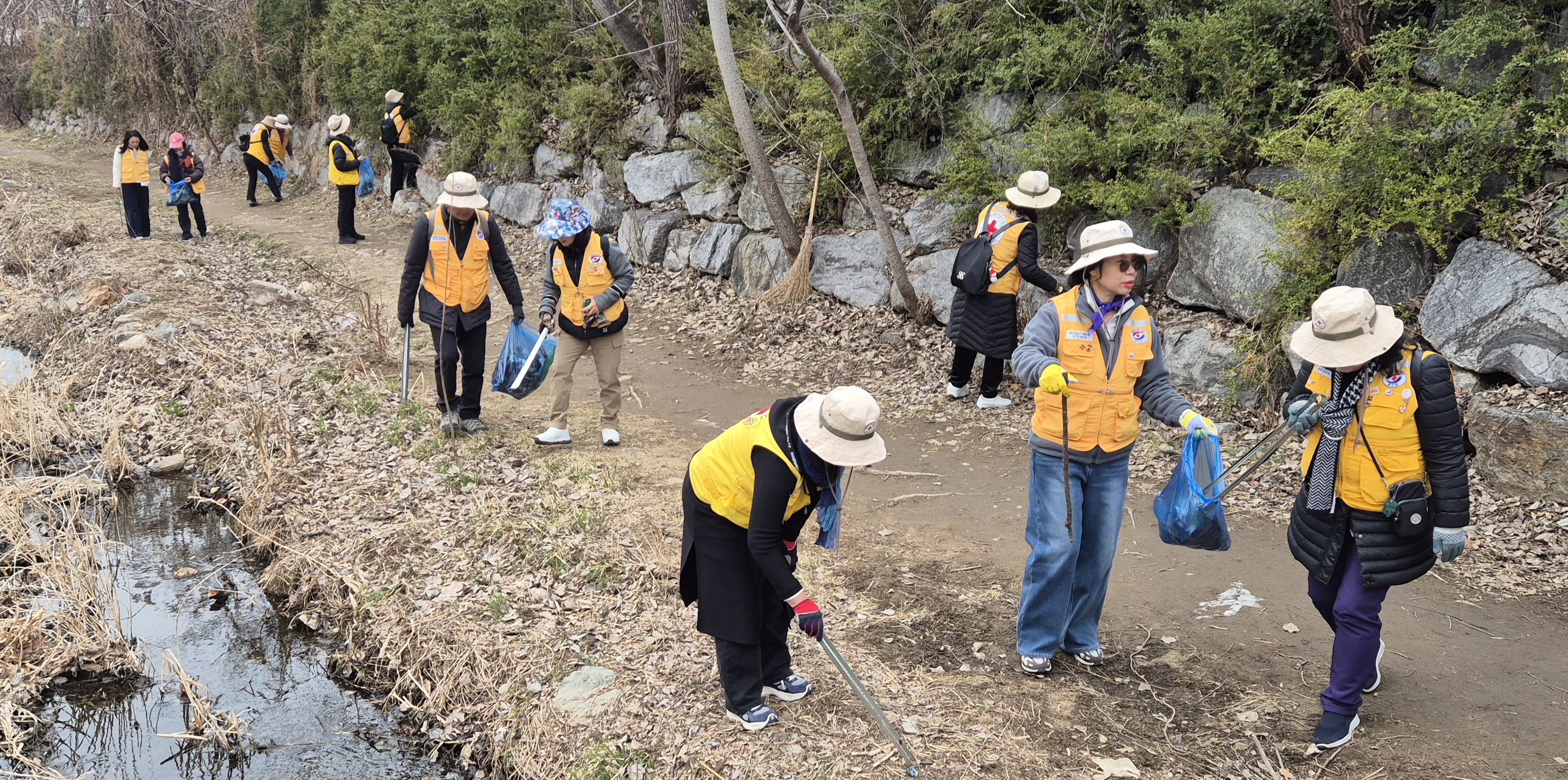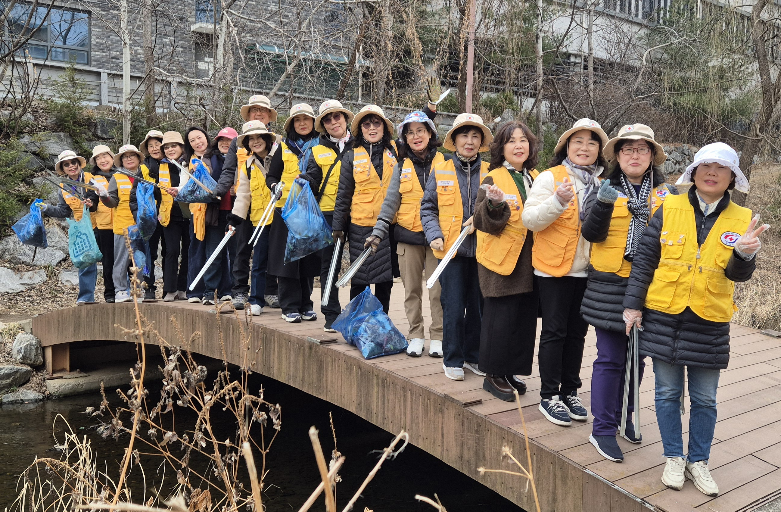 대한적십자사봉사회 안양시협의회(회장 변은경),소나무봉사회(회장 박민선)는 3월11일(수,10:00~12:00) 안양천 지천인 수암천과 시민들의 휴식처 삼덕공원 일원에서 줍깅 환경 캠페인을 전개했다.캠페인은 2026년 봄의 시작을 알리는 캠페인으로 회장(박민선),총무(김경옥),부회장(권선임,김영순)등 임원들과 역대회장(김미순,김용란,왕영현,최정옥)등이 참석하여 많은 봉사원들과 쌀쌀한 날씨에도 시민들의 산책로와 휴식처의 오물,특히 비닐류 줍깅했다.
