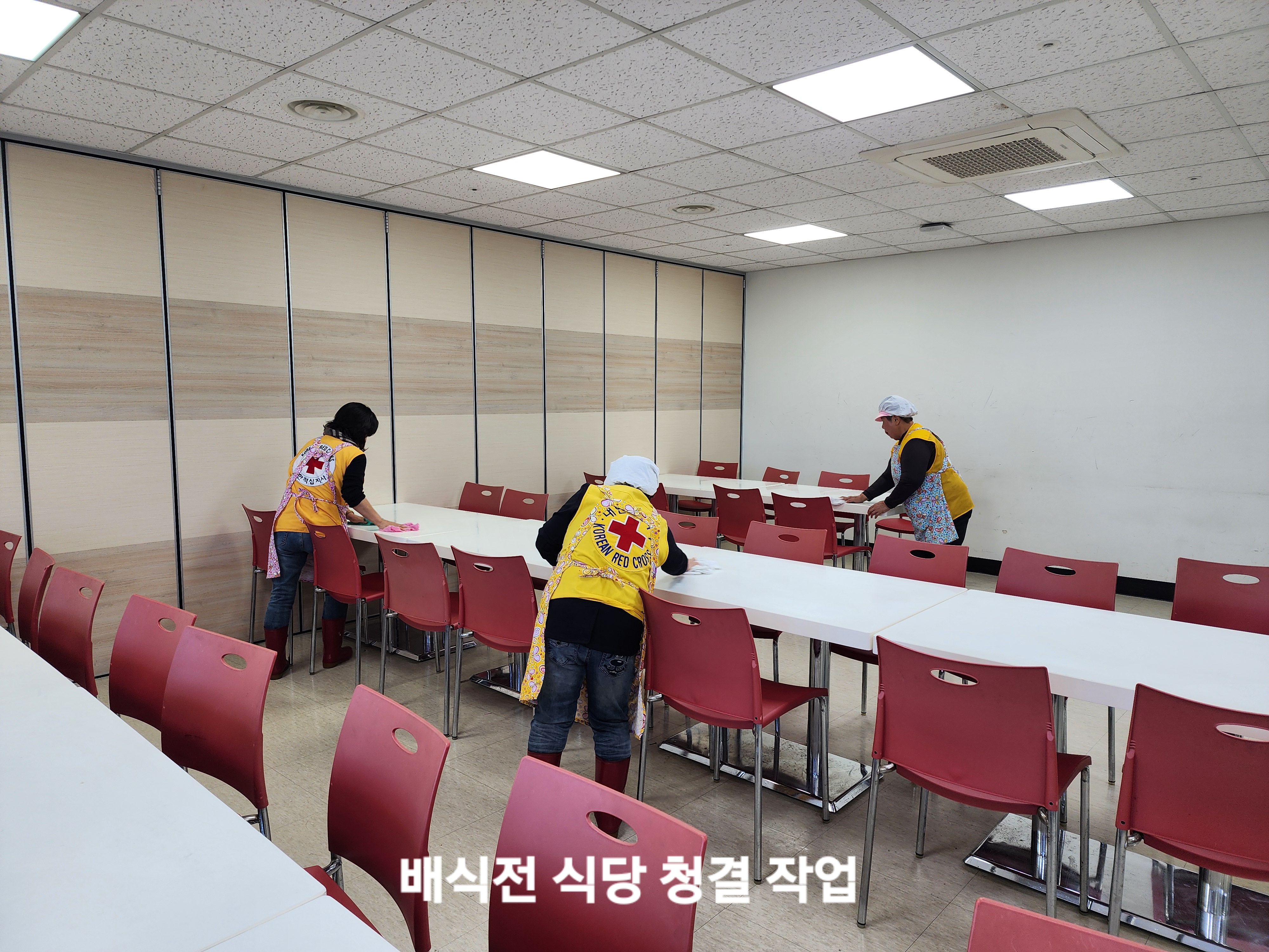 어시스트 해주고 어르신들이 식사를 할 테이블들을 정리하고 청결하게 했다.