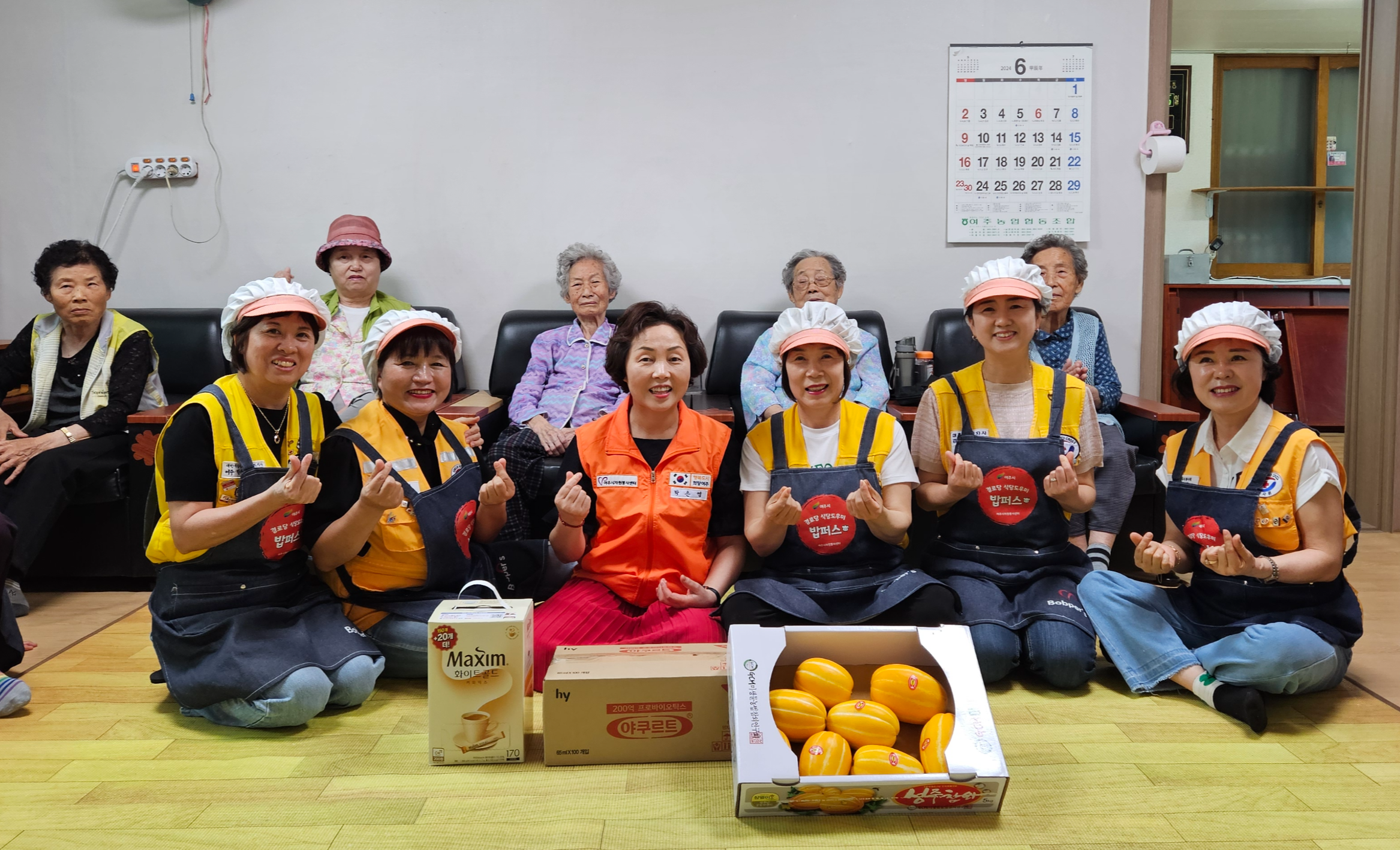 6월 5일은 여주시자원봉사센터(센터장 박은영)에서 봉사현장을 방문, 봉사원들을 격려하고 어른들에게 인사하는 시간을 갖었다. 특별히 이날은 한가람봉사회에서 참외 2box와 음료 1box를 후원하며 풍성한 상차림으로 어른들에게 입맛을 돋게했다.