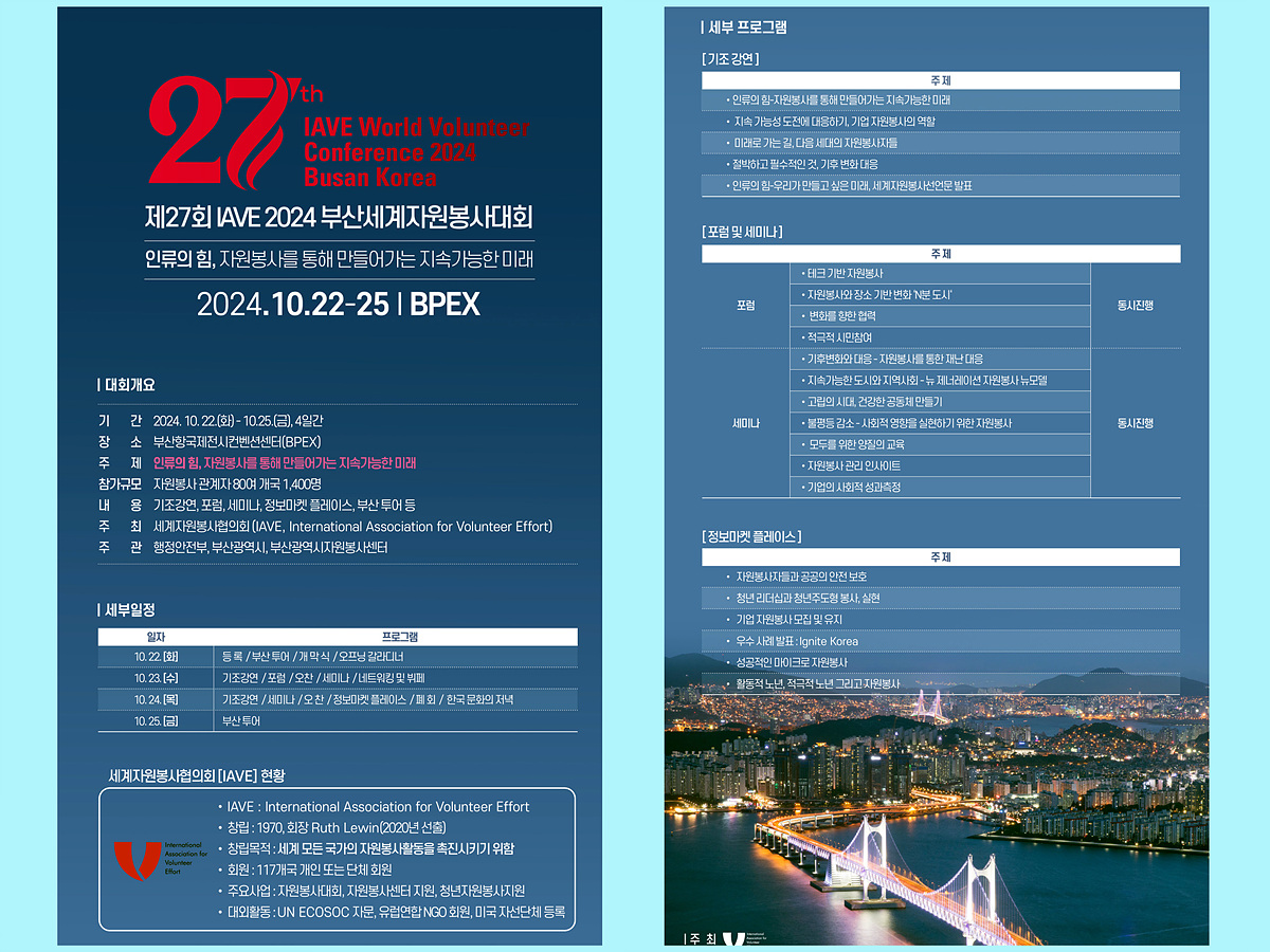 아울러 제27회 IAVE 2024 부산세계자원봉사대회 소개 영상도 있었다
