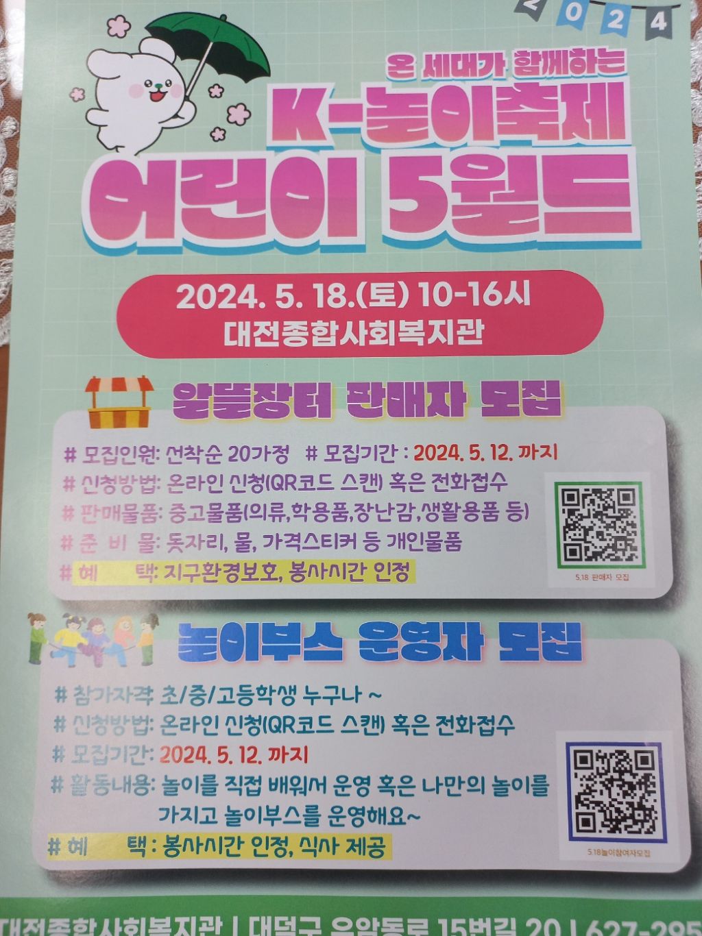 2024년5월18일 10:00~ 대전종합사회복지관에서 놀이축제가 열렸다.