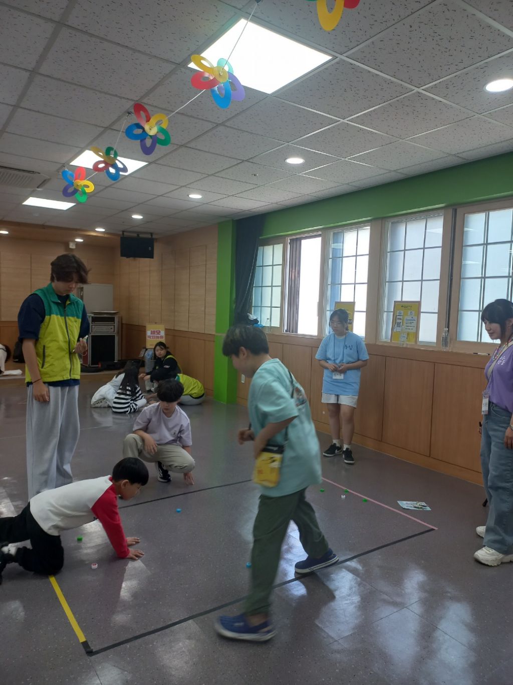 놀이부스에서는 놀이를 직접배워서 나만의 놀이부스를 운영도 해 보기도 하고 뚜껑 멀리 보내기,고무줄놀이,도장깨기 등 다체로운 놀이를 하며 즐겼다.