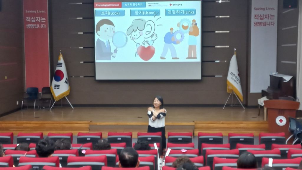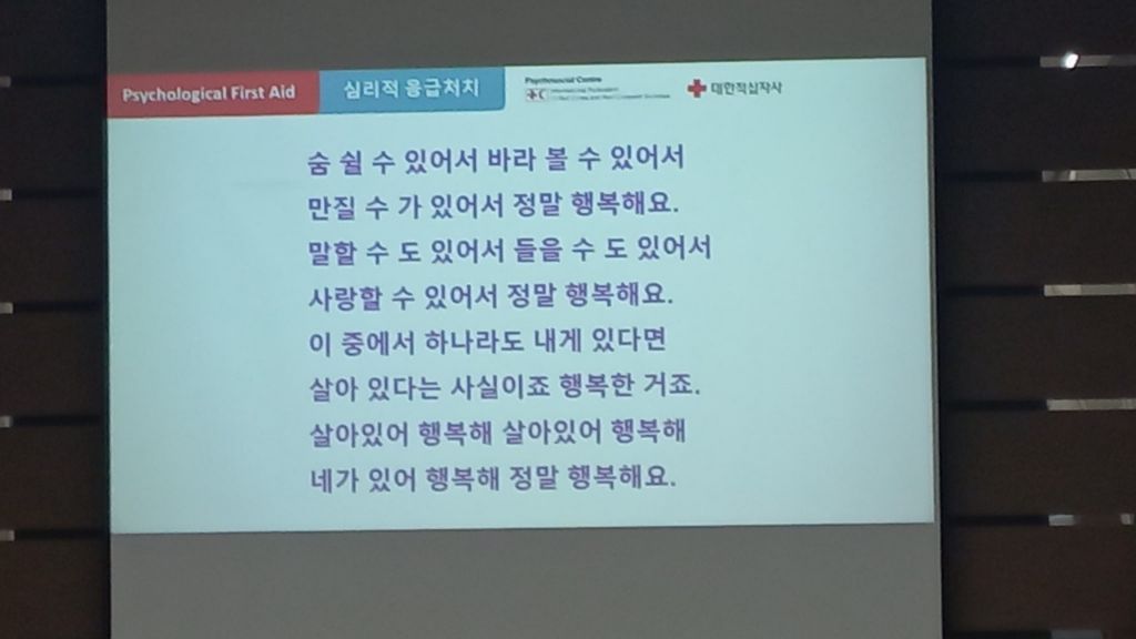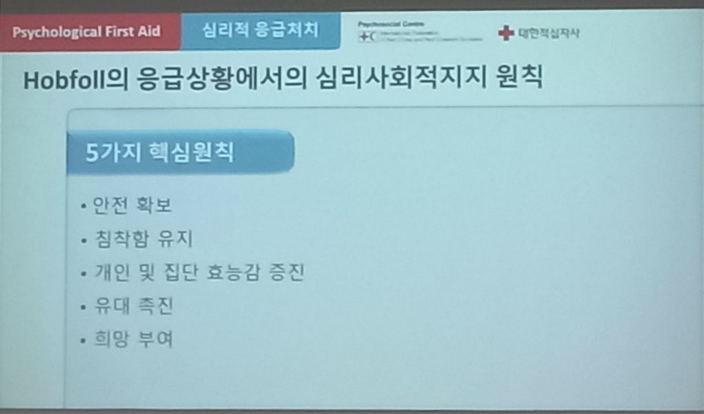 심리적 응급처치교육은 재난 발생이후 경험자들의. 심리적 어려움으로부터 일상생활에 빠르게. 돌아갈수 있도록 도움을 주고있다