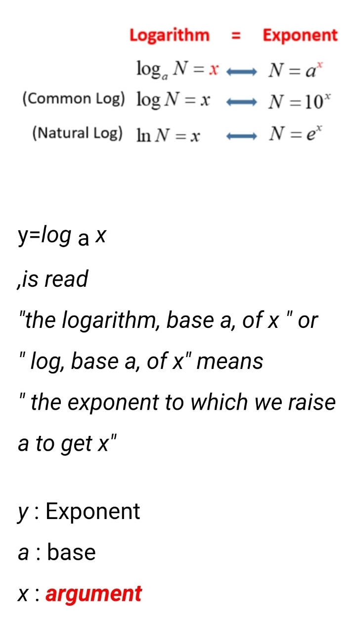 로그 함수에서, 어떤 수의 로그 수(exponent=로그값)에 대하여 그 어떤 수(argument)를 이르는 말