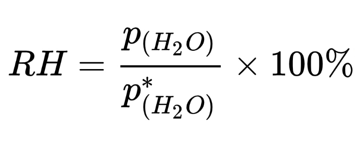 상대습도는, 특정한 온도의 대기 중에 포함되어 있는 수증기의 압력을 그 온도의 포화 수증기 압력으로 나눈 것을 말한다.