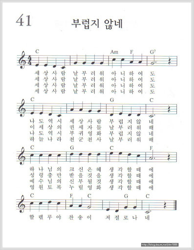 79년 11월30일에 초판이 나온 뒤 81년까지 확인된 것만으로 20판을 찍어낸 부흥회용 〈복음성가〉(영산출판사) 제5장, 그리고 97년 3월20일 발행된 〈새로운 복음성가〉(새로운 출판사) 제40장에 실린 이 노래는 “세상사람 날 부러워 아니하여도”로 시작하는데 모두 4절까지 있고 마지막에 “할렐루야 찬송이 저절로 나네”라는 후렴구가 붙어 있다.