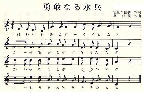 조 관장은 이 노래에 붙은 곡은 1895년 사사키 노부쓰나라는 사람이 작사하고 오쿠 요시이사라는 사람이 작곡한 〈용감한 수병〉에서 따온 노래로, 청일전쟁 승리를 찬양하고 애국심을 고취하는 일본의 국민가요였다고 했다. 그 노래 8절에 나오는 “아직 그대롭니까 적함 정원(定遠)은?/ 그 말 한 마디는 짧을지라도/ 황국을 생각하는 온 국민의/ 마음에 길이길이 쓰여지리라”라는 가사는 중상을 당하고도 부함장을 찾아 적함이 격침됐는지를 묻고 바로 숨졌다는 어느 3등 수병을 영웅화한 내용이다.