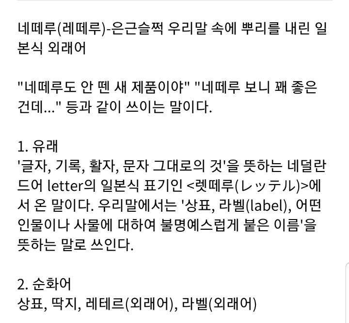 레테르(letter)는 라벨에서 나온 말로서 상품명 및 상품에 관한 여러 사항을 표시한 종이나 헝겊 조각을 말합니다.