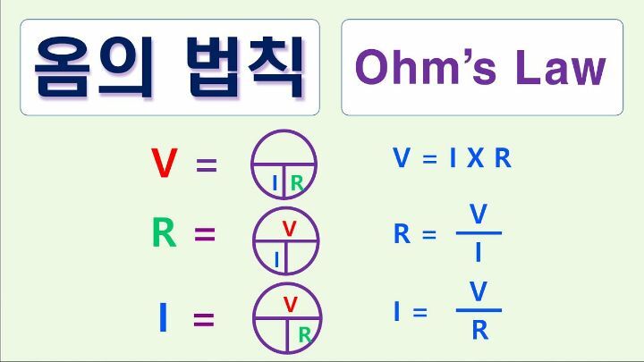 옴(Ohm)의 법칙 V=IR 에서 V는 전압(voltage)이고, R는 저항( resistance) I는 전류의 세기(intensity of current)의 약자이다.
