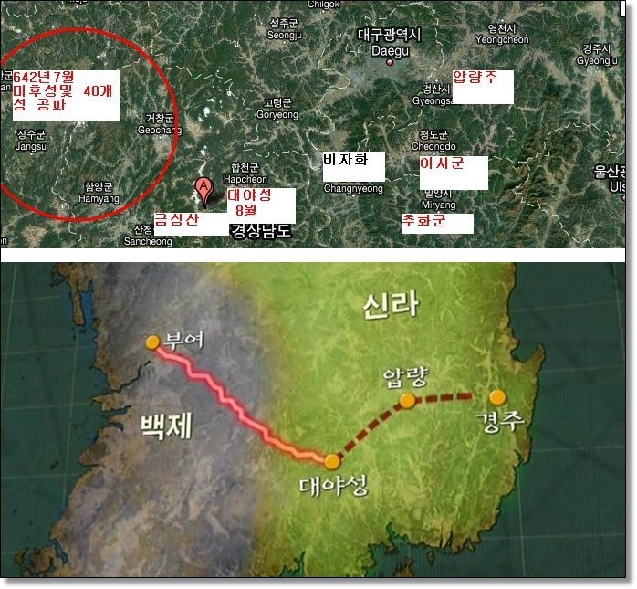“대야성” 본성이 합천읍 소재 연호사, 또는 군부대 뒷산(대야성산)이라고 주장하는 것은 현재 청와대가 휴전선 부근에 위치하고 있다는 말과 같은 뜻으로 해석될 수 있다. 왜냐하면 이곳은 백제와 접경지역이고 소위 전방(前防)이라는 것이다.