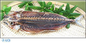 '구사야'는 전갱이를 썩혀서 발효한 액체에 갈고등어를 절였다가 굴비처럼 건조시킨 어류를 말한다.