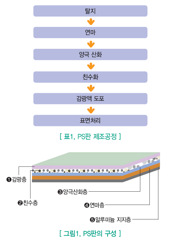 이번 강좌는 인쇄의 5요소 중 판에 대한 것으로 대부분의 평판인쇄에서 주로 사용하는 PS판의 특징과 제작 과정에 대해서 알아보도록 하겠습니다.