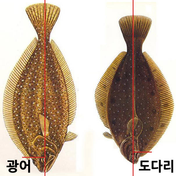 광어는 눈이 왼쪽에, 도다리는 오른쪽에 위치한다