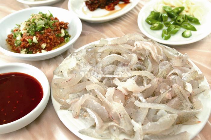 ▲뼈회로 만들어져 나온 꼬시래기회. 양념장에 찍어 먹으면 입 안에서 고소한 맛이 진동한다.