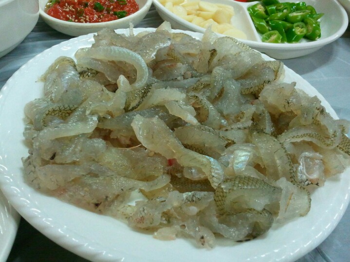 그런데 회 값이 생각보다 비쌌다. 중자 4만원, 대자 5만원! 요즘 한창 인기 있는 전어회만큼 비쌌다. 꼬시래기가 다른 고기처럼 쉽게 공급되지 않는 게 회값이 비싼 이유였다. 나는 “사진 촬영 겸 혼자 먹을 것이라 중자도 필요 없다”고 3만원어치만 썰어 달라고 했는데, 아주머니는 흔쾌히 그렇게 해주었다.