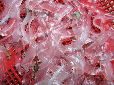 붕장어 새끼인 유리장어(glass eel), 백어(실치)