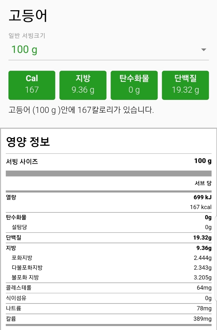 고등어 100g에 단백질 19.32g 작성자세이지|작성시간19.09.17|조회수712 목록 댓글 0 글자크기 작게가 글자크기 크게가 고등어 영양성분 다음검색 현재 게시글 추가 기능 열기 북마크 공유하기 신고 센터로 신고 댓글 댓글 0 댓글쓰기 답글쓰기 댓글 리스트