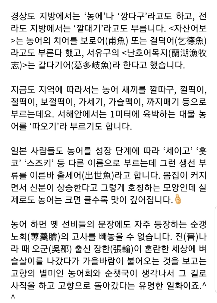 농어는 최소 50cm가 넘어야 비로소 본래의 명칭인 농어로 불린다는 것.
