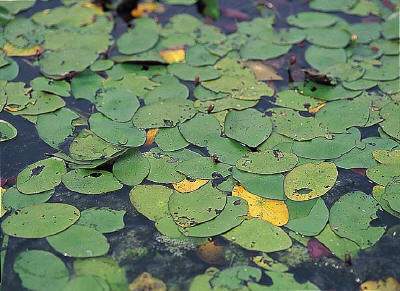 줄기는 원뿔모양이고 물에 잠겨 있으며 잎은 어긋나고 물 위에 떠 있다.