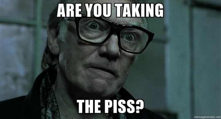 "Take the piss"는 놀리다,장난치다의 의미라는 것이죠