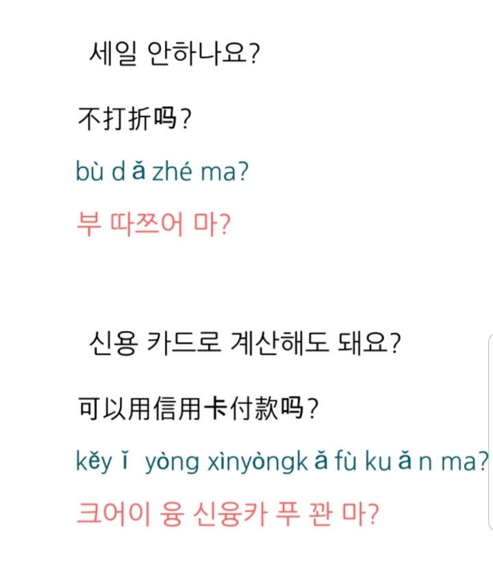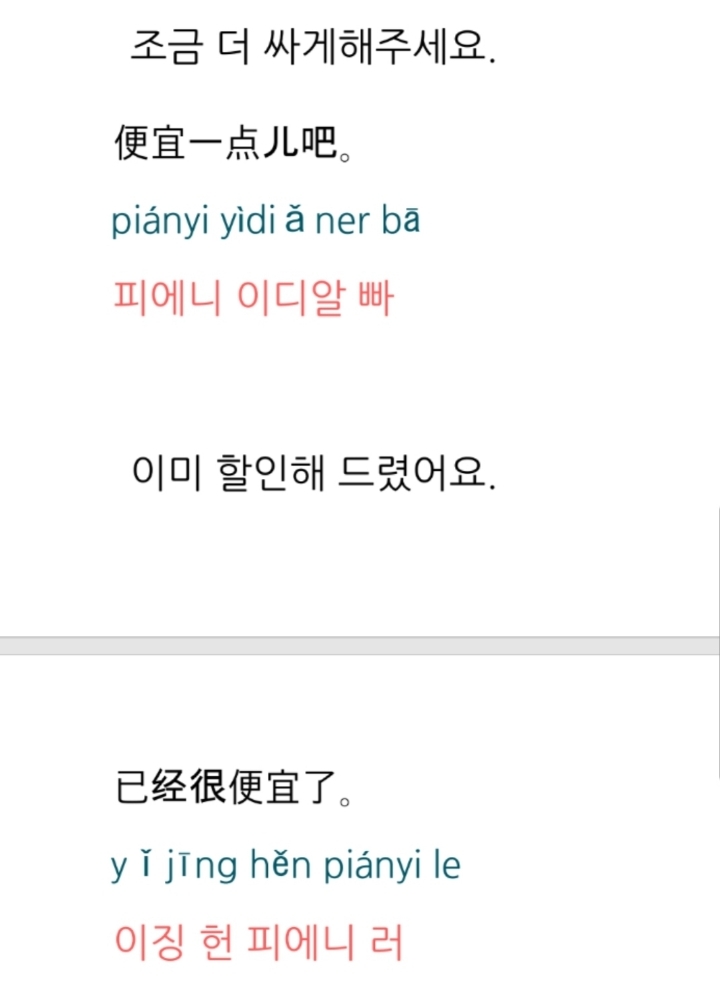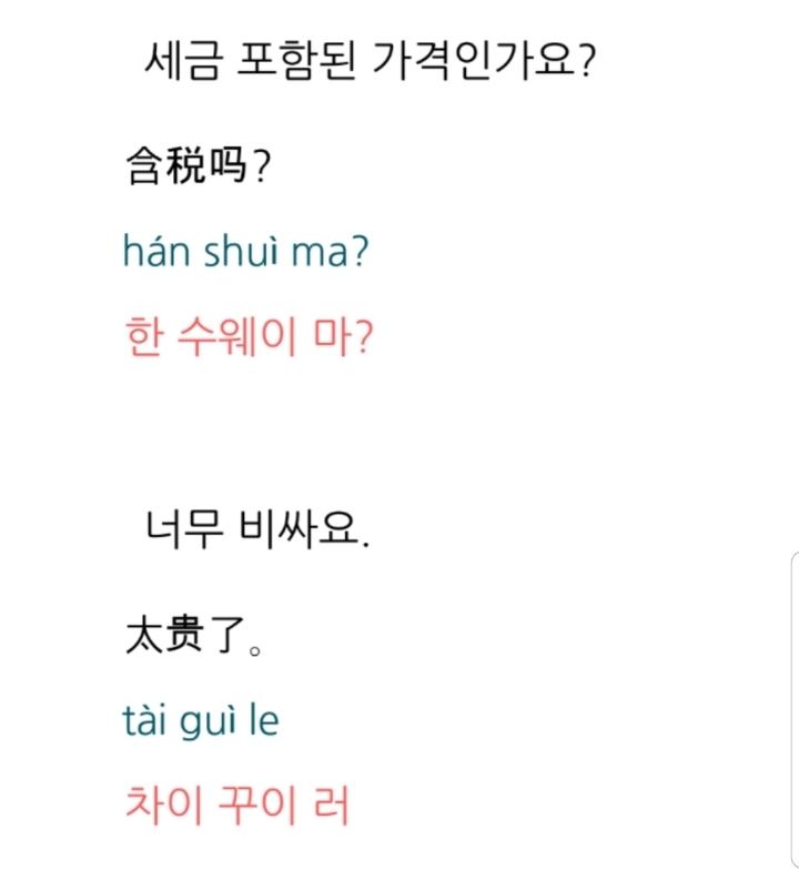 한국어 : 너무 비싸요. 좀 깎아주세요.