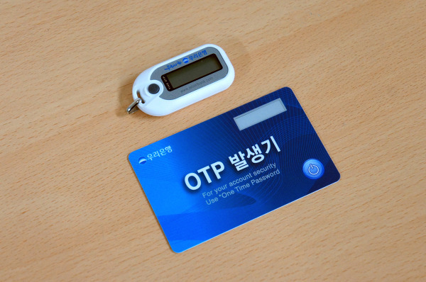 흔히 볼 수 있고 흔히 사용하는 금융기관용 OTP 토큰은 은행이나 증권사에서 2000~5000원[4]에 구입할 수 있다. 당연하지만 일단 한 번 OTP 토큰을 구입해 두면 금융기관별로 OTP 토큰을 다시 구매할 필요 없이 해당 금융기관에 방문하여 자신이 구입한 OTP 토큰을 등록할 수 있다. 심지어 금융 공동망으로 OTP 발급내역이 조회되어서 텔러가 "XX은행에서 받으신 OTP로 등록해 드릴까요?"라고 물어본다. 보통 금융기관이나 기타 OTP를 지급하는 곳에서는 미래테크놀러지와 바스코 OTP를 많이 주는데, 미래 OTP는 유리몸 수준의 품질과 바스코에 비해 짧은 배터리 수명으로 악명 높다.